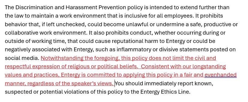 Entergy — Written Guardrails for Religious and Political Expression
