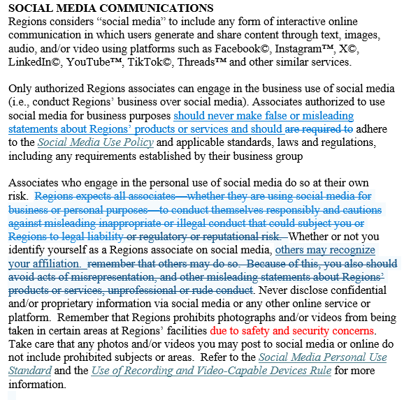 Regions Financial — Clarifying Off-Duty Speech Protections